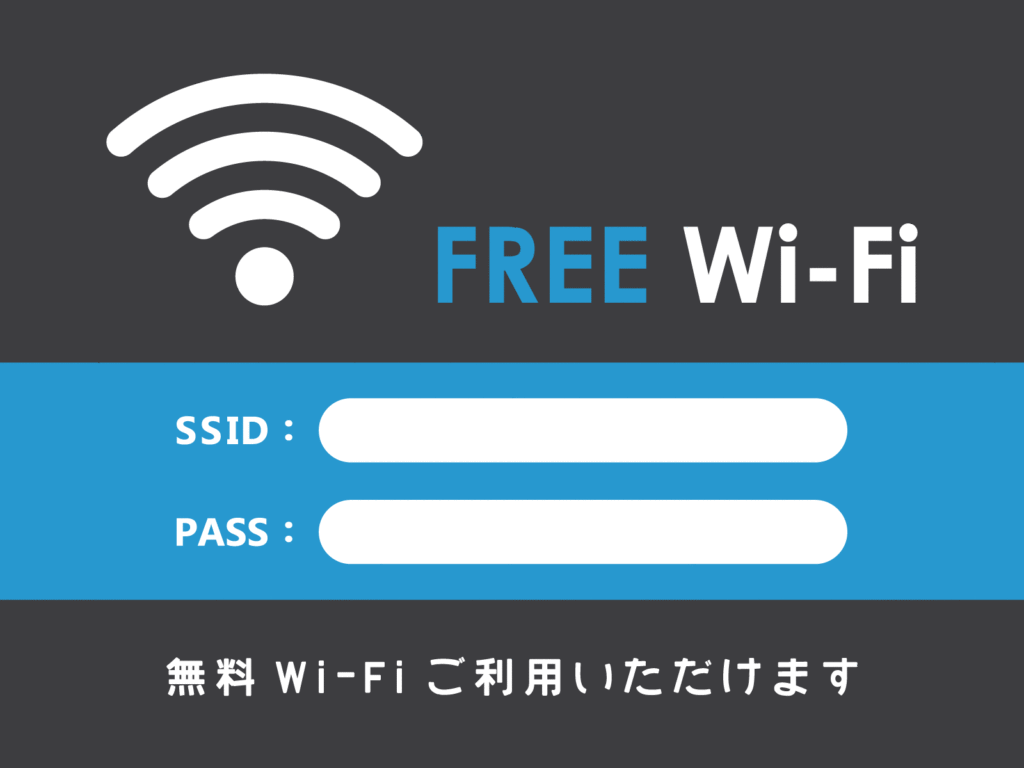 当店ではフリーWi-Fiをご利用いただけます。