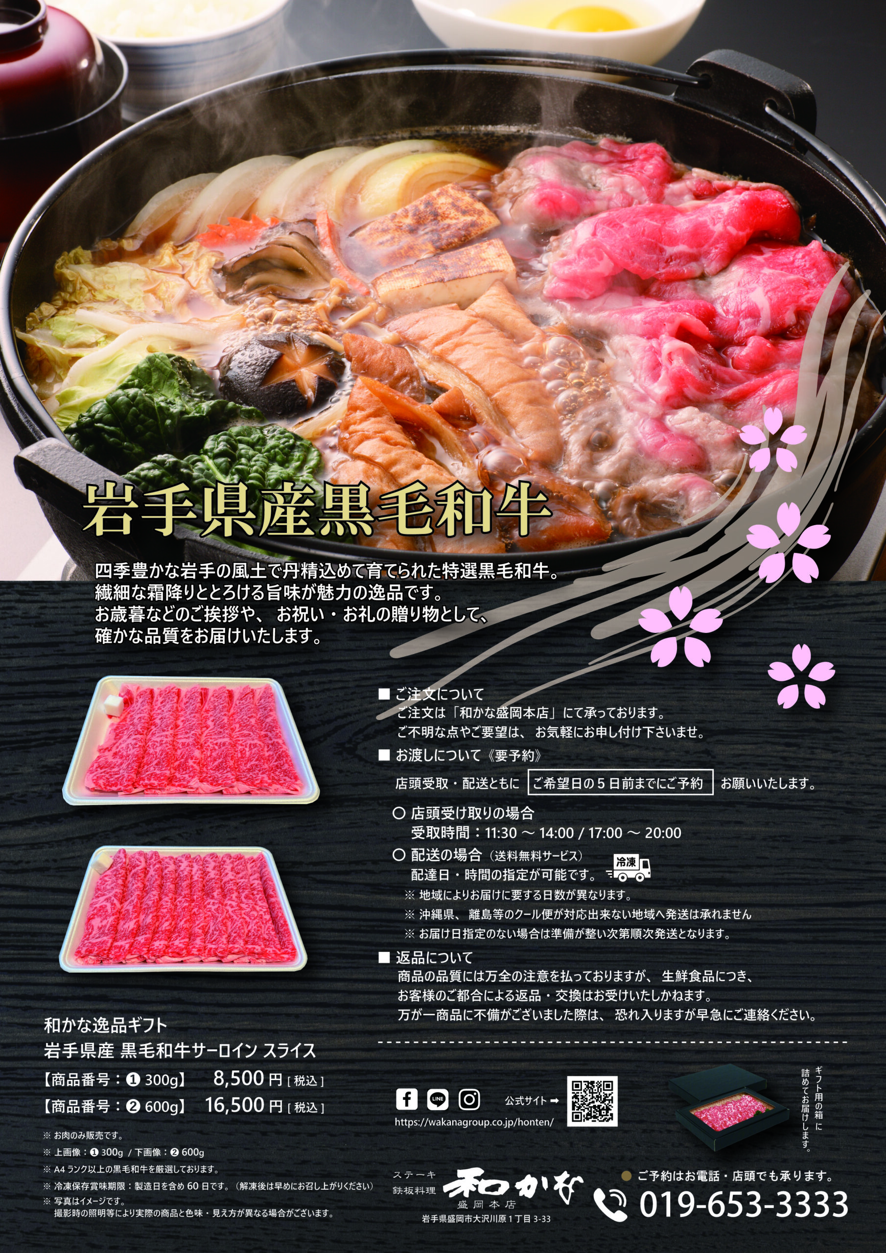 厳選した A4ランク以上の岩手県産黒毛和牛サーロインスライス をご用意いたしました。